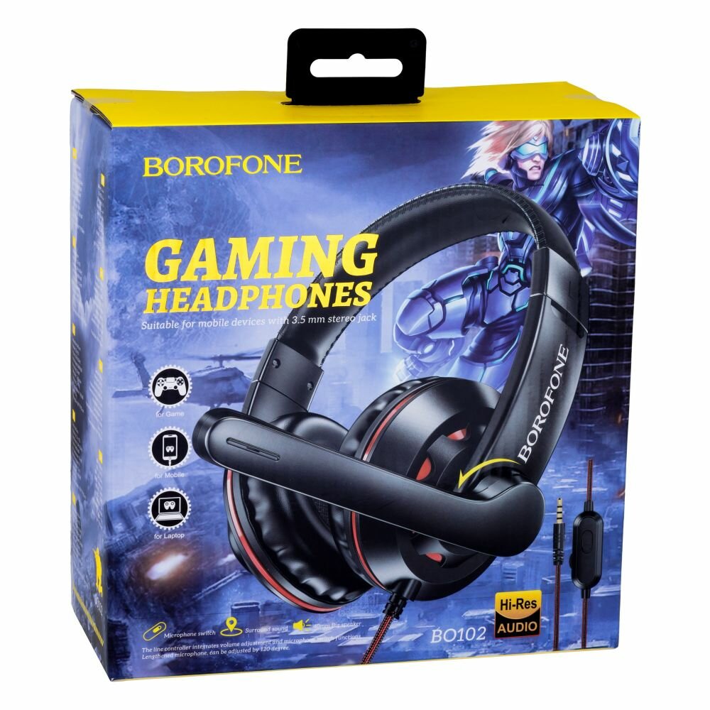 Навушники Borofone BO102 PC Amusement - це практична і зручна гарнітура в класичній реалізації. Пристрій виділяється приголомшливою якістю звучання і незвичайним зовнішнім виглядом. Дана ігрова гарнітура сумісна практично з усіма пристроями, які мають роз'єм AUX, що визначає її універсальність. Деталі корпусу виготовлені з міцного пластику, обід і м'які амбушюри обшиті приємною на дотик шкірою. Оголів'я зі слайдером дозволяє пристосувати навушники до анатомічних параметрів будь-якої людини. В конструкції пристрою передбачено наявність регульованого мікрофона і розміщеного на одній точці навушника кабелю. Надійний кабель має довжину 1,2 м, оснащений пультом управління з регулятором гучності і кнопкою для включення мікрофона. Гарнітура комплектується перехідником AUX і докладною інструкцією. Використовуючи світовий досвід, отриманий під час створення кращих акустичних систем, інженери Borofone створили легкі та комфортні навушники.