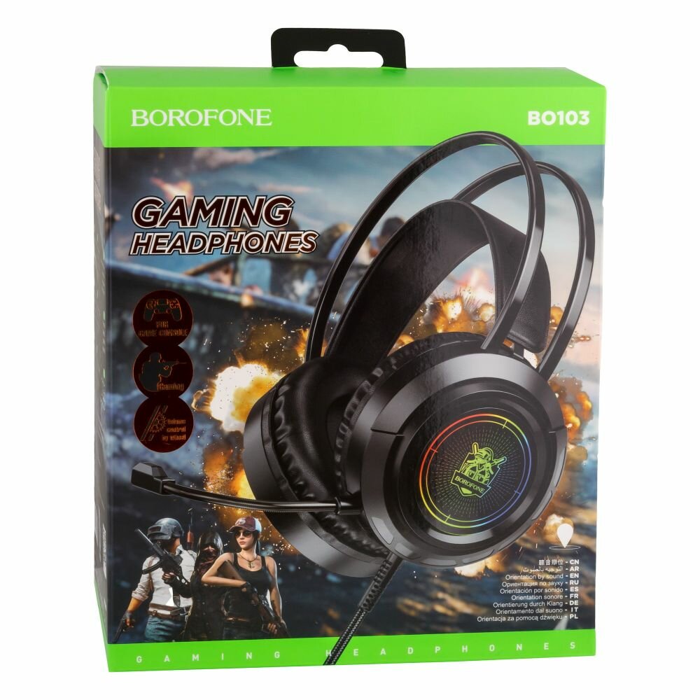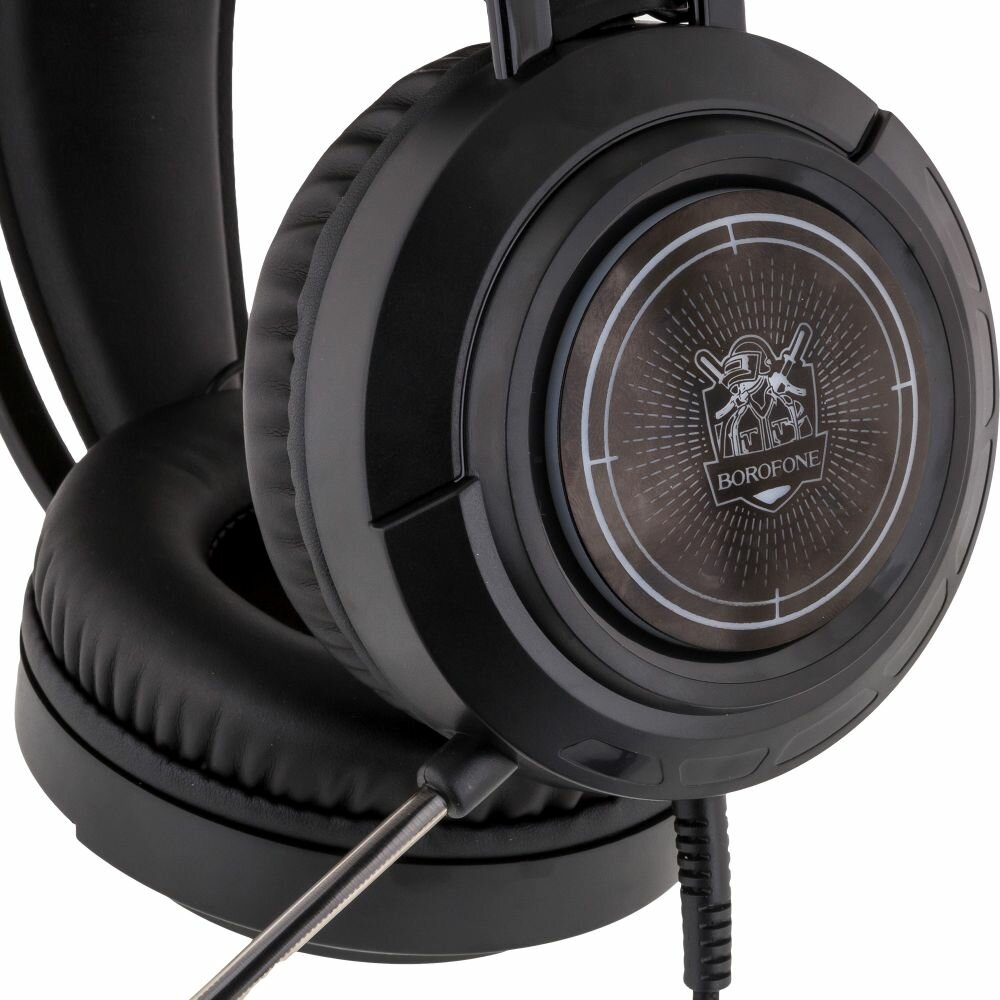 Наушники для компьютера Borofone BO103 - модель с ярким дизайном и звуком, сочетающим баланс высоких и низких частот. Аксессуар поможет насладиться детализированным аудио сопровождением в играх, с комфортом общаться с партнерами по игре, благодаря регулируемому микрофону, и получить настоящее удовольствие от прослушивания музыки в HI-FI качестве. Современный дизайн гарнитуры отображает ее принадлежность к геймерским устройствам, ее привлекательный внешний вид дополнен необычно реализованной трехцветной подсветкой ушных элементов, которая создает завораживающий визуальный эффект. Конструкция аксессуара выделяется своей надежностью, выполнена из прочных, износостойких материалов. Оголовье представлено двумя дугами и практичной системой крепления с эластичной накладкой, подстраиваемой под форму головы. Обшитые приятной на ощупь экокожей, мягкие амбушюры защитят от постороннего шума и гарантируют комфорт, даже при многочасовом использовании гарнитуры. Встроенный кабель с одной точкой крепления имеет нейлоновую оплетку, оснащен разъемом USB и стандартным разъемом mini-jack 3,5 мм. Длина кабеля - 2.2м. Borofone - это развивающийся лидер на рынке акустических систем.
