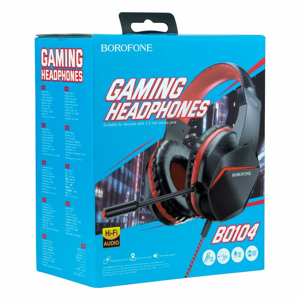 Навушники Borofone BO104 - геймерська повнорозмірна гарнітура, що володіє практичною конструкцією та привабливим зовнішнім виглядом. Модель реалізована у стильному, двоколірному дизайні з оригінальними деталями, що підкреслюють її ігрову спрямованість. Завдяки великим драйверам діаметром 40мм, пристрій відтворює насичений, деталізований звук, що дозволить насолодитися оригінальним звучанням музичних композицій в якості Hi-Fi і зануриться в ігровий процес з реалістичними звуковими ефектами. Його корпусні деталі виготовлені із міцного, стійкого до навантажень пластику, обплетення кабелю з однією точкою кріплення – з нейлону. М'які амбушюри та накладка телескопічного обода обшиті приємним на дотик, зносостійким матеріалом. Модель оснащена регульованим всеспрямованим мікрофоном, який чудово передає мову, а її кабель - регулятором гучності та стандартним роз'ємом Mini-Jack 3.5mm. Гарнітура комплектується кабелем-перехідником для підключення до роздільних роз'ємів для мікрофона і навушників.