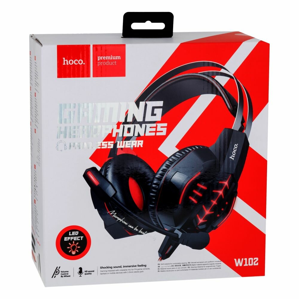 Повнорозмірні навушники Hoco W102 PC Cool відрізняються видатними звуковими характеристиками і широким динамічним діапазоном. Чудова якість виконання, неповторний стиль і доступність даної моделі в двох стильних кольорах привертає увагу і викличе захоплення навіть найвимогливіших геймерів і меломанів. Потужні динаміки діаметром 40 мм і регульований мікрофон з пасивним шумозаглушенням забезпечують деталізований звук і реалістичну передачу мови. Деталі корпусу виготовлені з міцного пластику, обід виконаний із застосуванням металу і якісної шкіри, якою також обшиті і м'які амбушюри. Подвійний підвіс і телескопічне наголів'я гарантують зручність незалежно від анатомічних особливостей користувача. Аксесуар оснащений LED підсвічуванням мікрофона і вушних елементів, яке ідеально підкреслює його оригінальний дизайн. Модель має регулятор гучності і, прикріплений на одній точці, кабель довжиною 2м з роз'ємами USB-A і mini-jack 3.5мм. Навушники комплектуються інструкцією і перехідником AUX - 2x3.5мм.