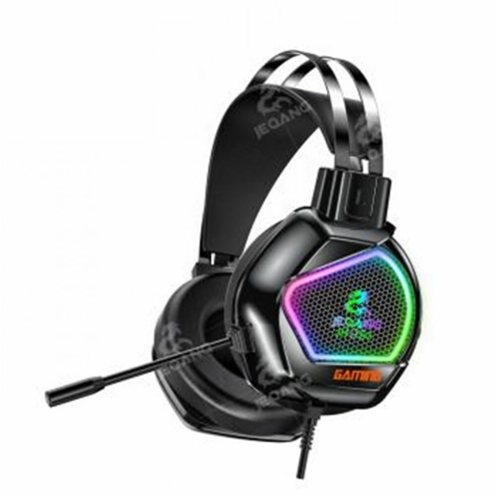 Ігрові навушники Jeqang JH-760 7.1 - це сучасна гарнітура, розроблена з урахуванням потреб професійних кіберспортсменів. Модель реалізована в унікальному дизайні, вирізняється невеликою вагою, ергономічністю та практичною конструкцією. Її відмінною особливістю є здатність відтворювати насичений об'ємний звук із ефектом 7.1 у широкому частотному діапазоні з потужними басами. Завдяки деталізованій передачі всіх звукових ефектів, вона забезпечить повне занурення в ігровий світ і значно підвищить реакцію на все, що відбувається в ньому. Корисним та приємним доповненням є наявність чутливого мікрофона, який реалістично передає мову та допоможе з повним комфортом спілкуватися з партнерами з гри. Вушні елементи пристрою надійно зібрані, декоровані стильним логотипом виробника та динамічним, пульсуючим RGB підсвічуванням, яке підкреслює його ігрову спрямованість. Їх м'які амбушюри обтягнуті зносостійкою штучною шкірою, щільно прилягають до вух, не створюючи дискомфорту, і захищають від навколишнього шуму. Конструкція обода складається з двох металевих дуг та еластичної накладки, яка підлаштовується під форму голови. На одному з вушних елементів знаходиться вихід вбудованого кабелю, регулятор гучності та мікрофон, що регулюється. Кабель довжиною 1.5м захищений міцним обплетенням з PVC, оснащений роз'ємом USB (male) для підключення навушників до комп'ютера.